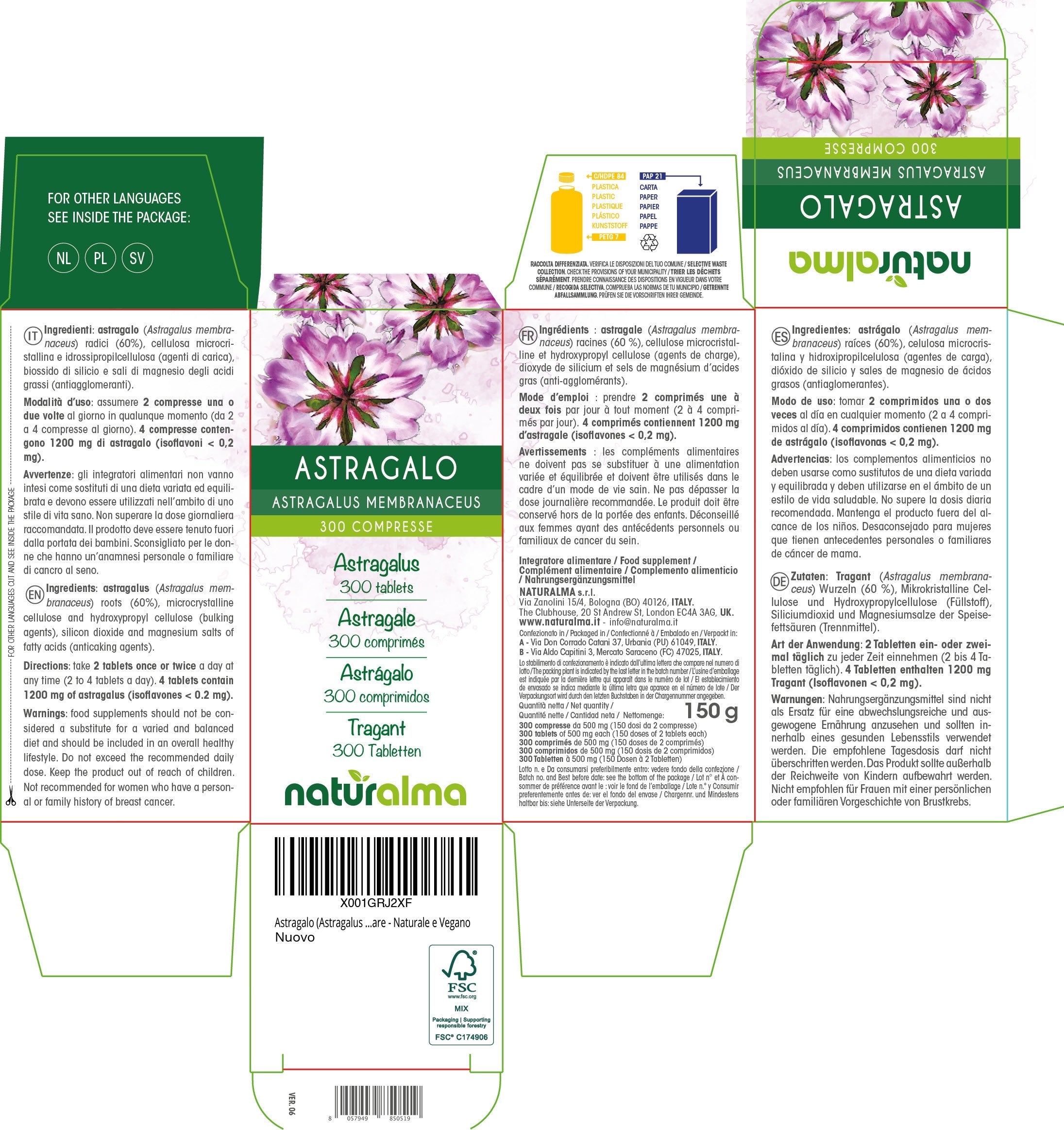 4 compresse contengono 1200 mg di astragalo (isoflavoni < 1,5 mg).