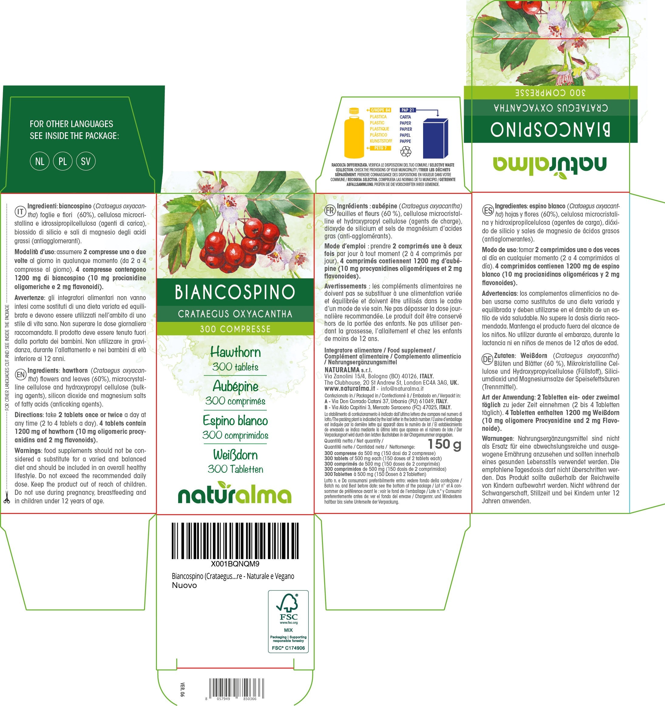 Biancospino (Crataegus oxyacantha) foglie e fiori (60%), cellulosa microcristallina e idrossipropilcellulosa (agenti di carica), biossido di silicio e sali di magnesio degli acidi grassi (antiagglomeranti).