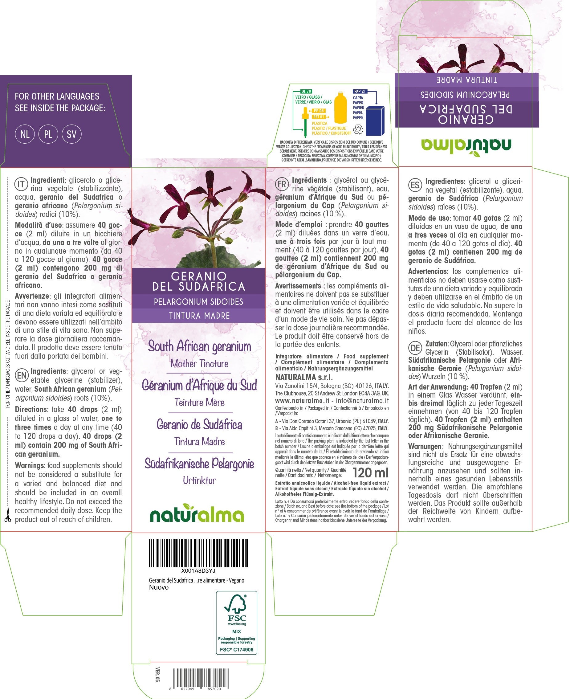 40 gocce (2 ml) contengono 200 mg di geranio del Sudafrica o geranio africano.