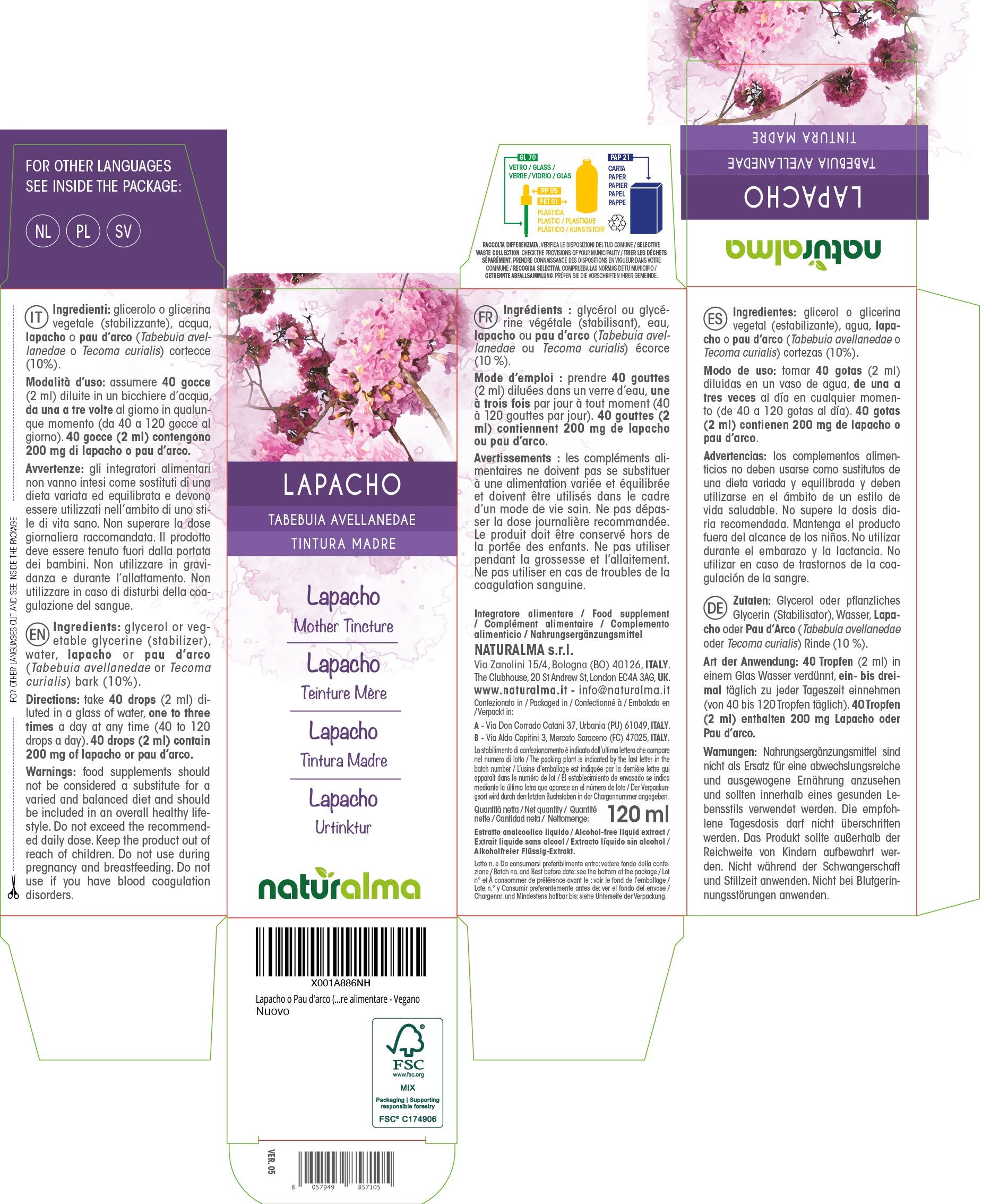 Lapacho Tintura madre liquido analcoolico - Naturalma - Integratore alimentare