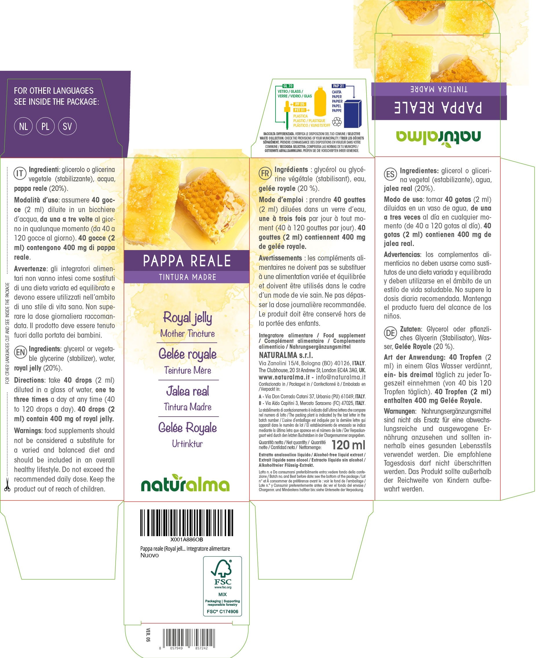 Pappa Reale Tintura madre liquido analcoolico - Naturalma - Integratore alimentare