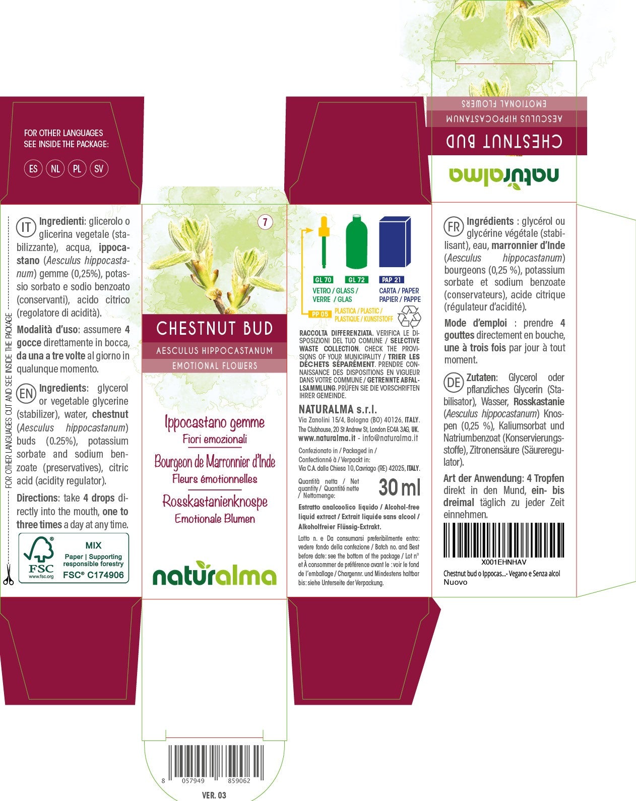 Chestnut Bud Fiori emozionali liquido analcoolico - Naturalma - Integratore alimentare