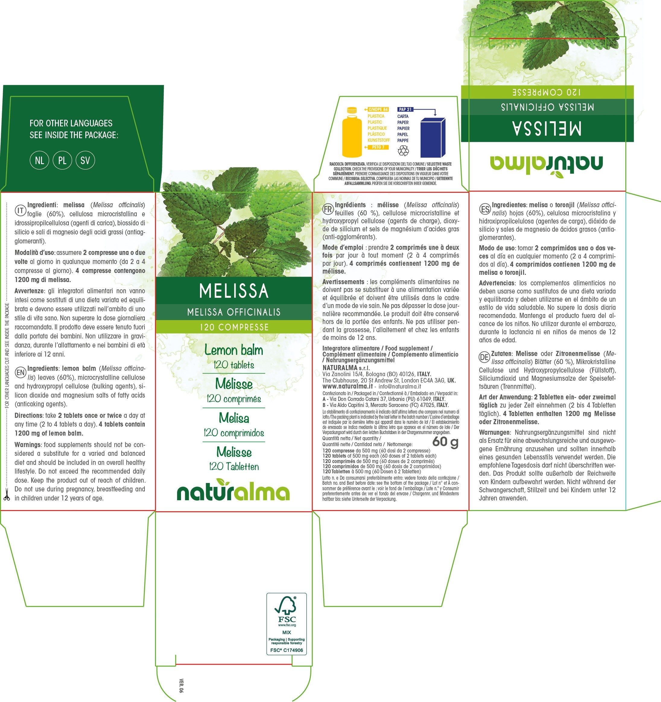 Melissa compresse - Naturalma - Integratore alimentare
