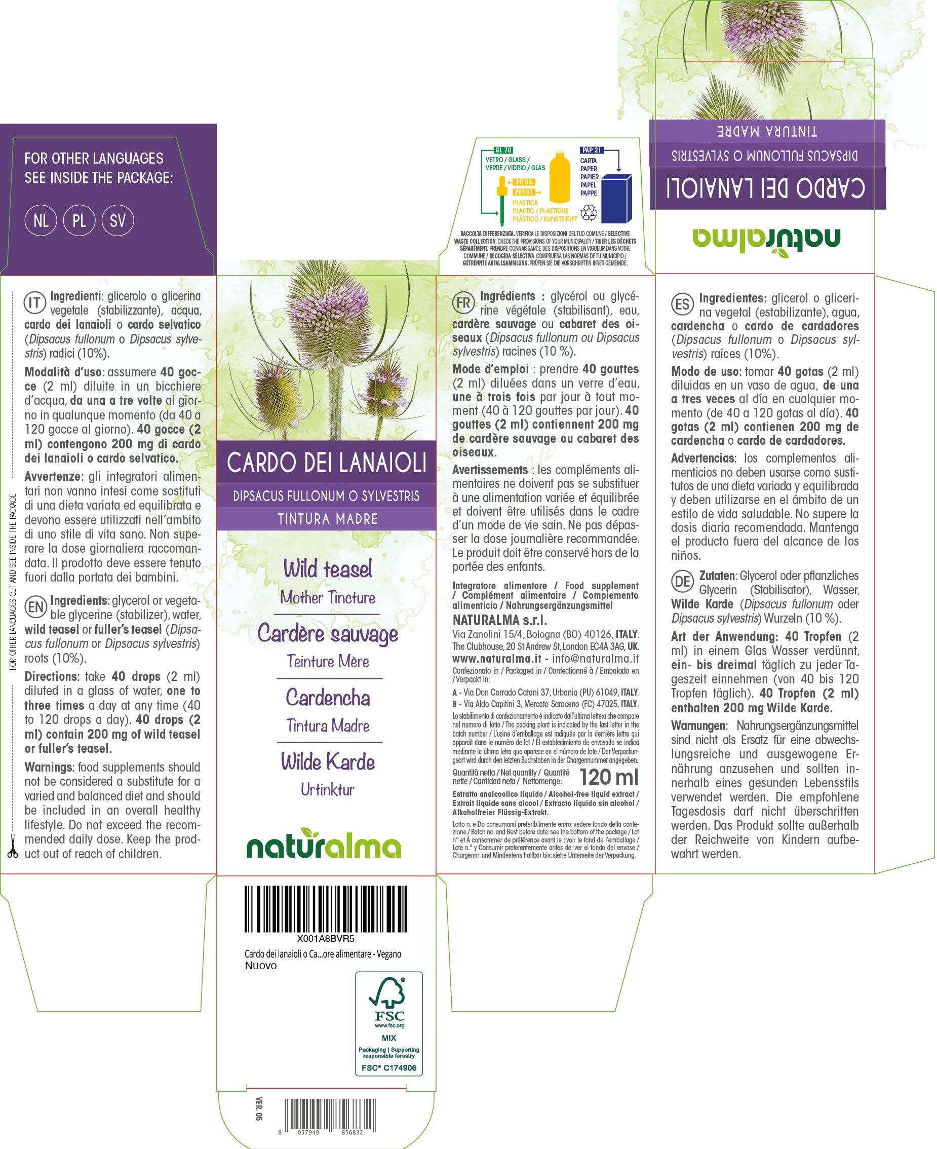 Cardo dei Lanaioli Tintura madre liquido analcoolico - Naturalma - Integratore alimentare