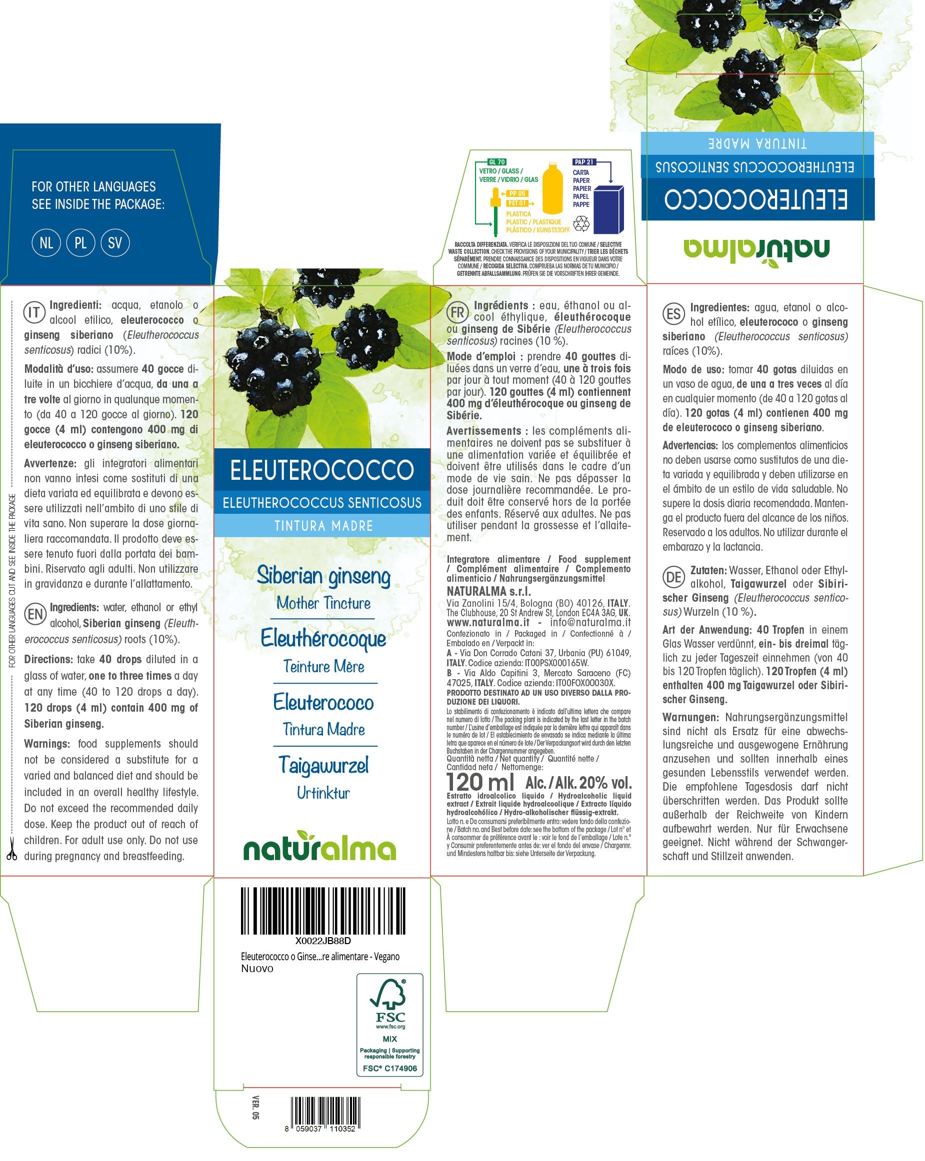 120 gocce (4 ml) contengono 400 mg di eleuterococco o ginseng siberiano.