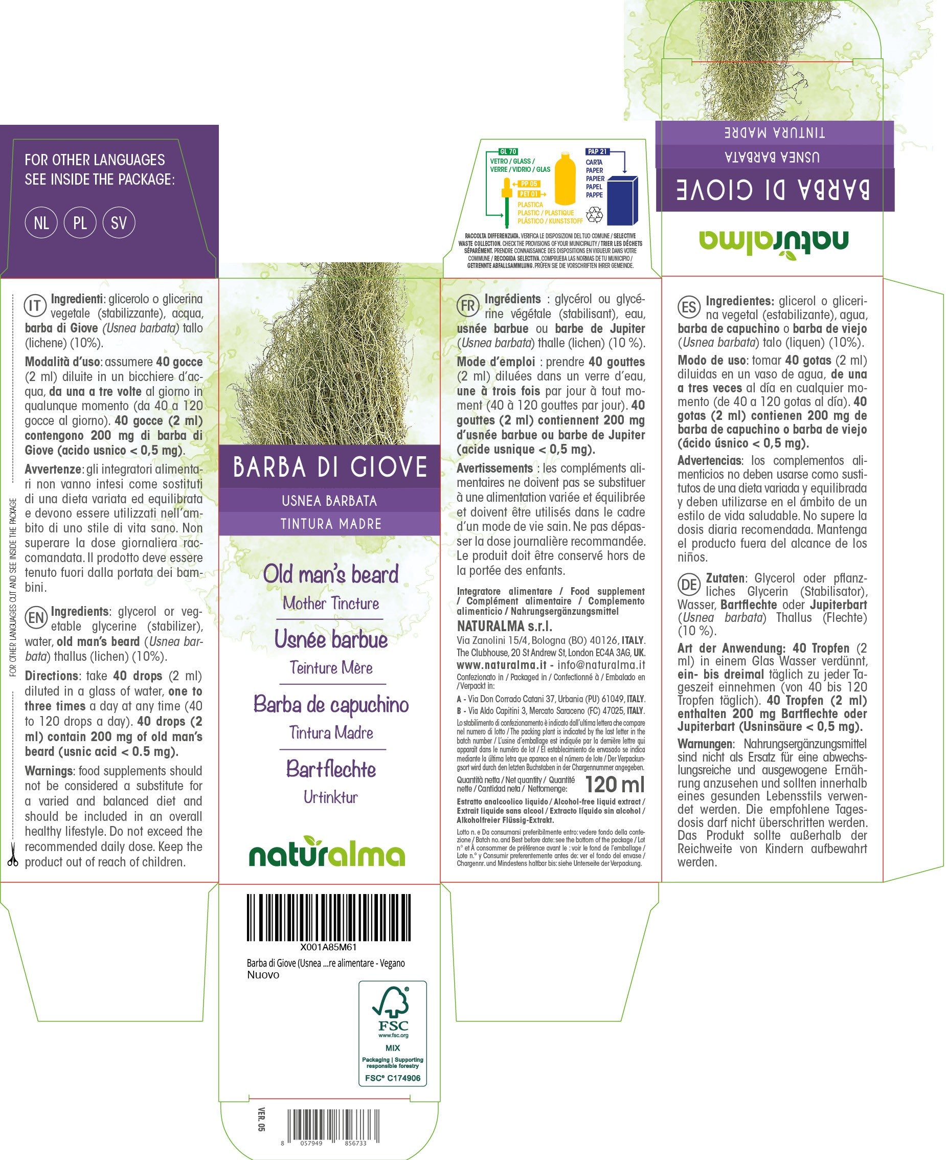 Glicerolo o glicerina vegetale (stabilizzante), acqua, barba di Giove (Usnea barbata) tallo (lichene) (10%).