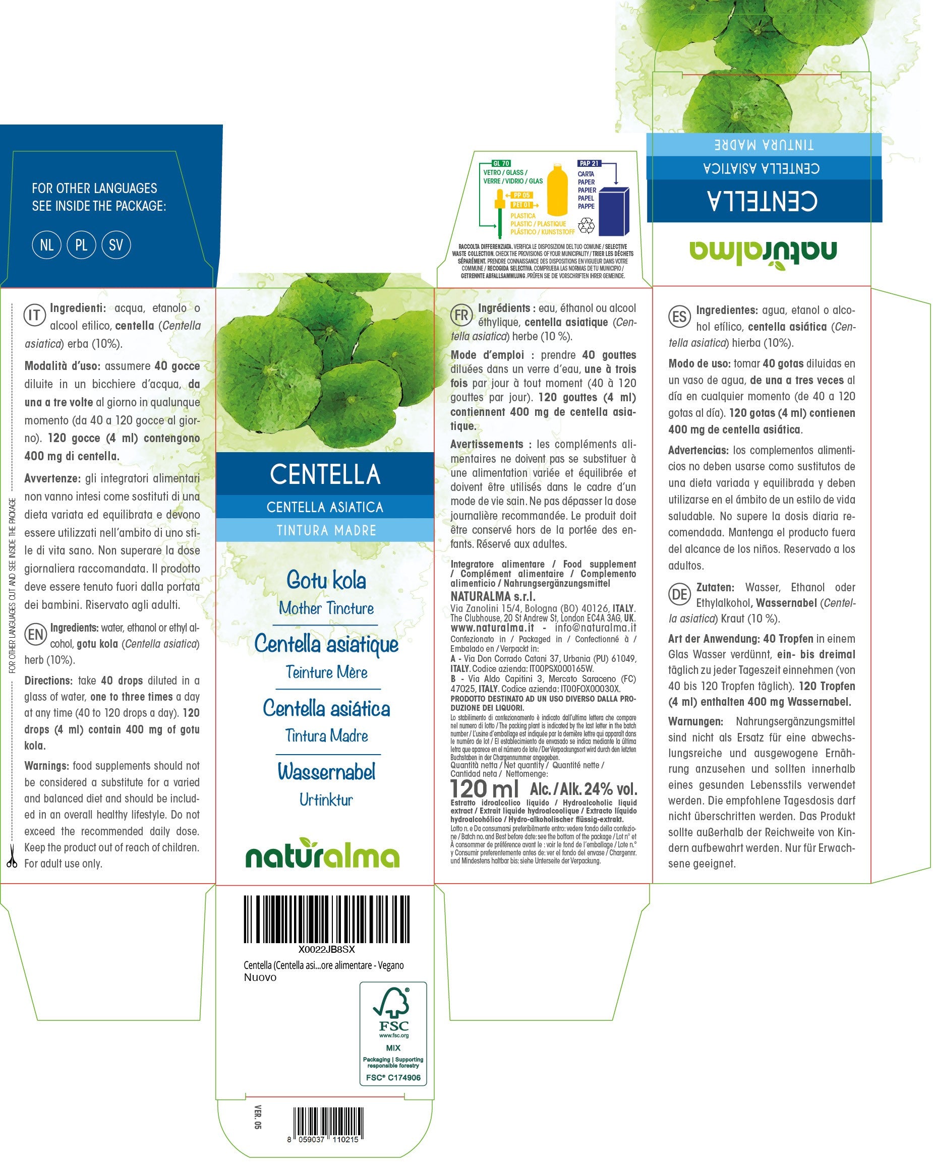 Centella Tintura madre liquido alcoolico - Naturalma - Integratore alimentare