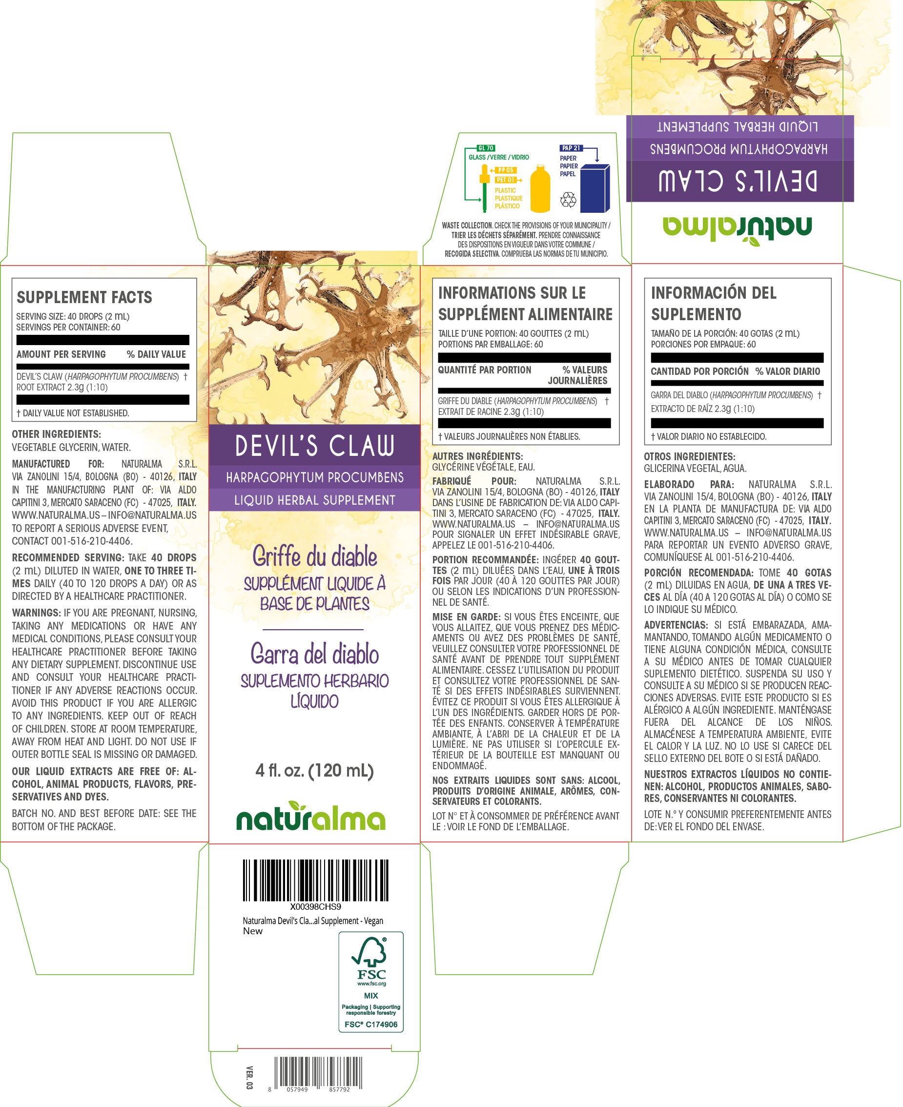 Devil's claw Alcohol-free liquid tincture - Naturalma - Herbal supplement