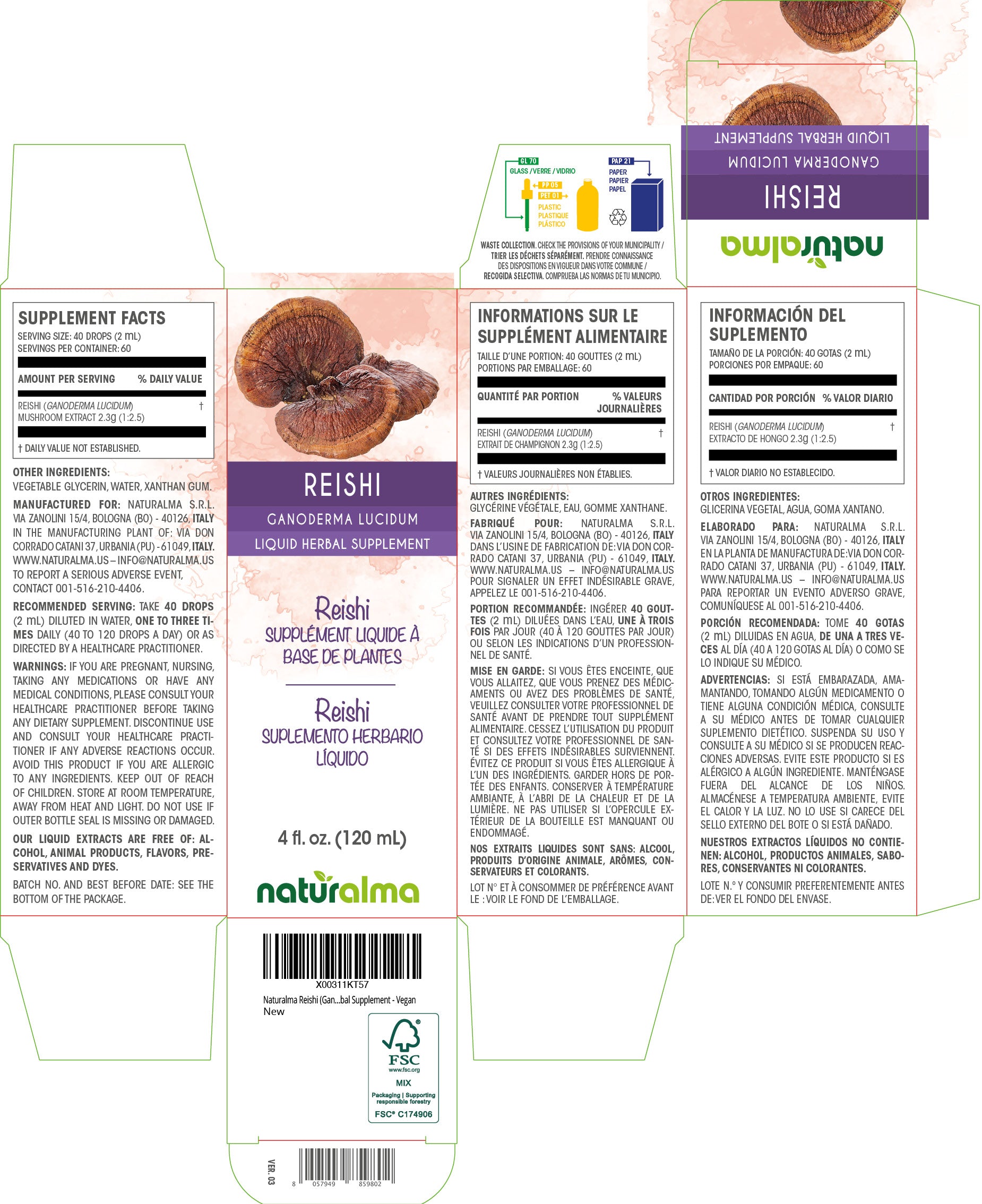 Reishi Alcohol-free liquid tincture - Naturalma - Herbal supplement