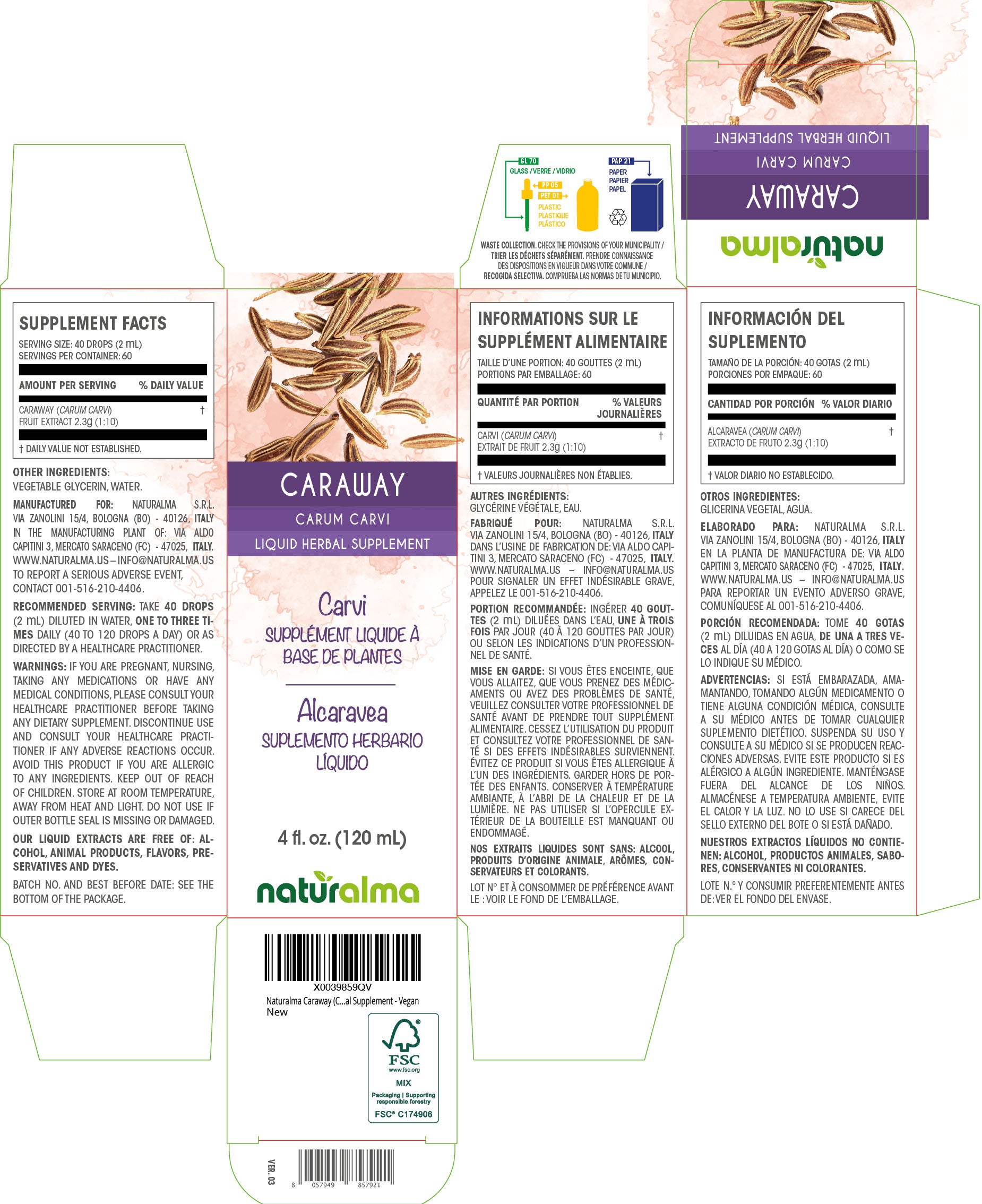 Caraway Alcohol-free liquid tincture - Naturalma - Herbal supplement