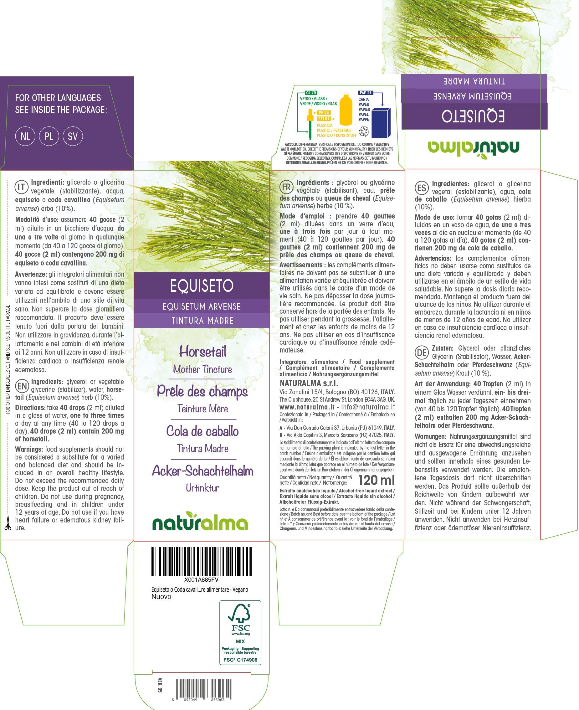 40 gocce (2 ml) contengono 200 mg di equiseto o coda cavallina.