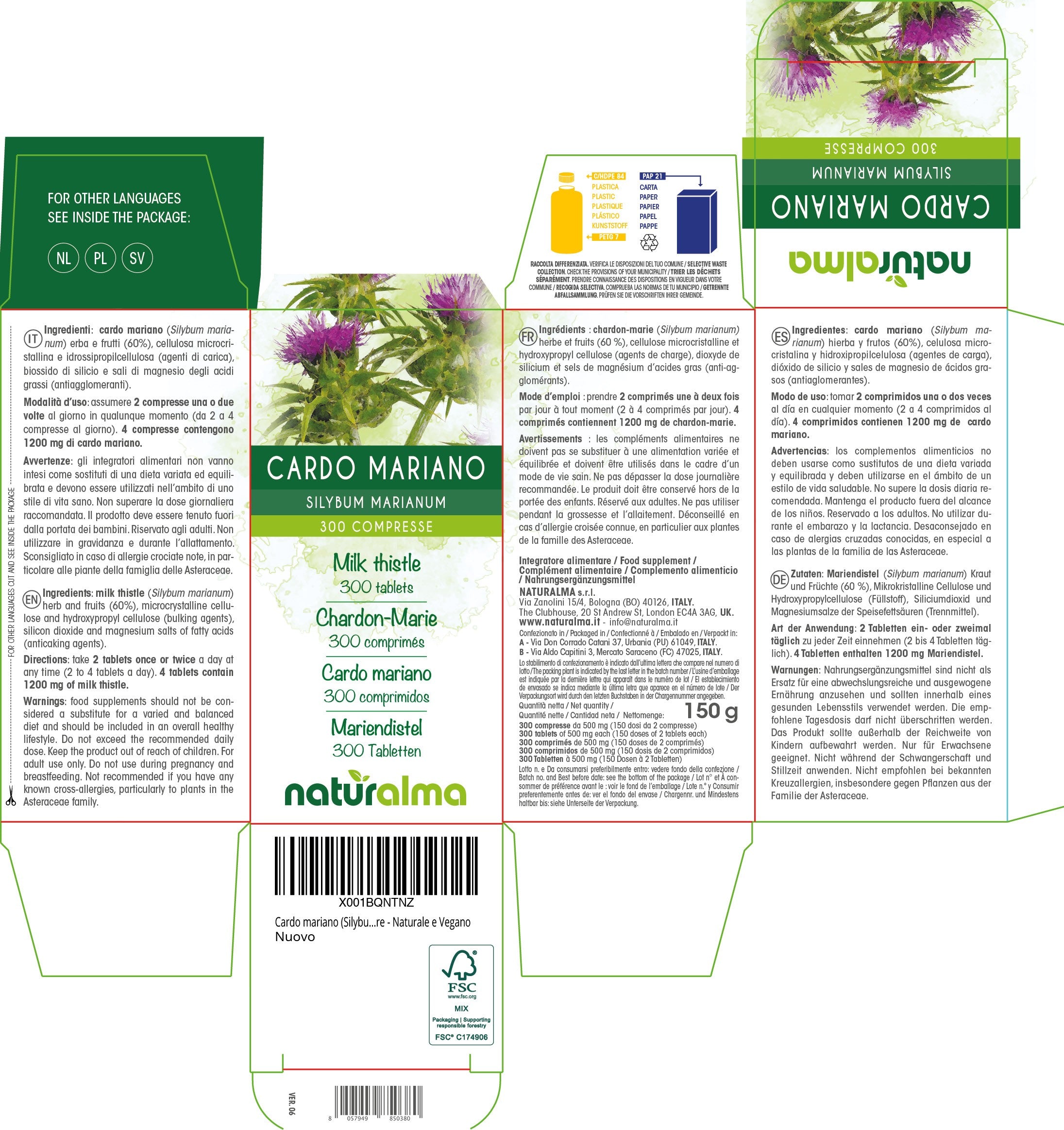 4 compresse contengono 1200 mg di cardo mariano.